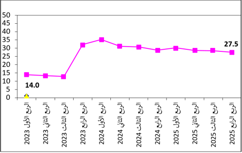 بلغ عدد العاطلين عن العمل في الضفة الغربية حوالي 280 ألف في الربع الرابع 2025 (بنسبة 27.5%)، مقارنة مع حوالي 293 ألف في الربع الثالث 2025 (بنسبة 28.5%).