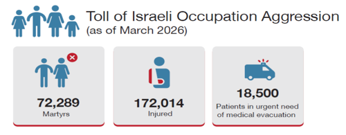 The scale of escalating humanitarian needs requires immediate and effective international action, including the lifting of restrictions on the entry of critical medical equipment and supplies to ensure the continuity of life-saving health services. Data indicate that more than 18,500 patients require urgent medical evacuation, including 3,800 children who need advanced treatment interventions outside Palestine.