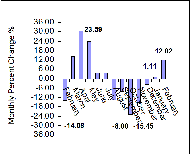 Monthly percent changes in Consumer price index in Palestine for the period February 2025 – February 2026