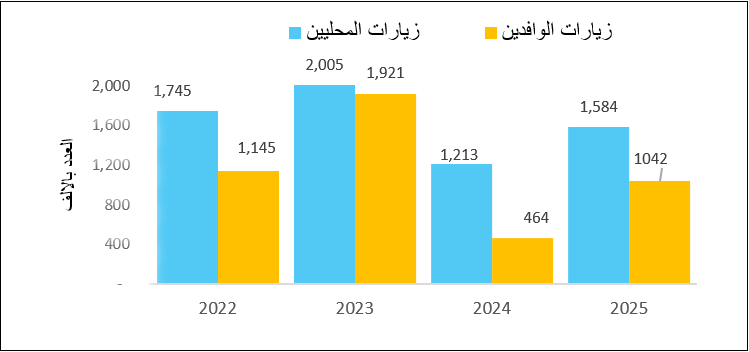 عدد الزيارات خلال النصف الأول من الأعوام 2021-2025
