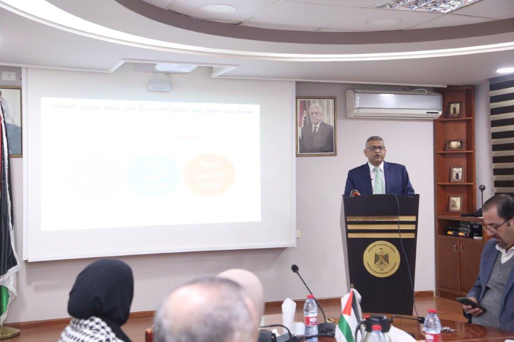 رام الله – 17/02/202، اطلق الجهاز المركزي للإحصاء الفلسطيني بالتنسيق والتشاور مع وزارة الاقتصاد الوطني وجمعية حماية المستهلك الفلسطيني، اليوم، "منصة رصد أسعار بعض السلع الأساسية خلال شهر رمضان المبارك 2026"، وجاء ذلك خلال ورشة عمل نظمها الجهاز في مقره الرئيسي بمدينة رام الله، بحضور ممثلي الوزارات والمؤسسات الرسمية والخاصة والاتحادات والمهتمين بالاقتصاد والصحفيين الاقتصاديين وممثلي وسائل الاعلام المختلفة.