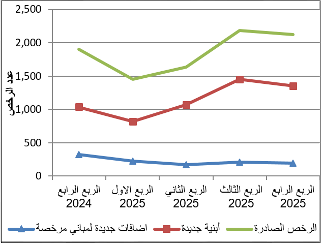 بلغ عدد رخص الأبنـية الصادرة للمباني السكنيـة وغير السكنيـة 2,120 رخصة خلال الربع الرابع من العام 2025، منها 1,354 رخصة أبنية جديدة.