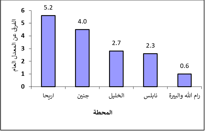 إضافة إلى ذلك، لوحظ أن درجات الحرارة الصغرى قد ارتفعت خلال العام 2025 عن المعدل السنوي بمقدار تراوح ما بين 0.6 مo في محطة رام الله والبيرة، و5.2 مo في محطة أريحا.