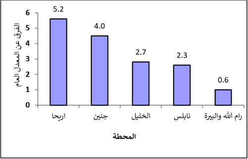 إضافة إلى ذلك، لوحظ أن درجات الحرارة الصغرى قد ارتفعت خلال العام 2025 عن المعدل السنوي بمقدار تراوح ما بين 0.6 مo في محطة رام الله والبيرة، و5.2 مo في محطة أريحا.