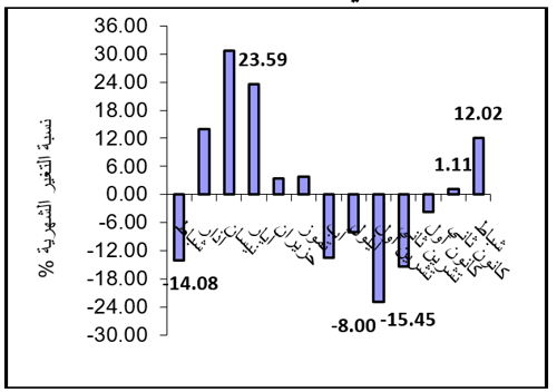 نسب التغير الشهرية لأسعار المستهلك في فلسطين خلال الفترة من شباط 2025 – شباط 2026