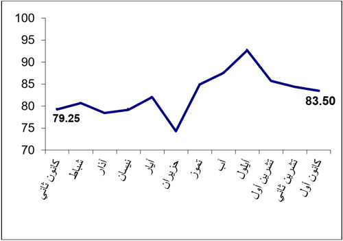 سجل الرقم القياسي لكميات الإنتاج الصناعي انخفاضاً مقداره 1.03% خلال شهر كانون أول 2025 مقارنة بشهر تشرين ثاني 2025، إذ انخفض الرقم القياسي لكميات الإنتاج الصناعي إلى 83.50 خلال شهر كانون أول 2025 مقارنة بـ 84.37 خلال شهر تشرين ثاني 2025 (سنة الأساس 2019 = 100).