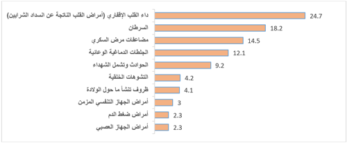 الأسباب العشرة الرئيسية للوفيات المسجلة في الضفة الغربية، 2024