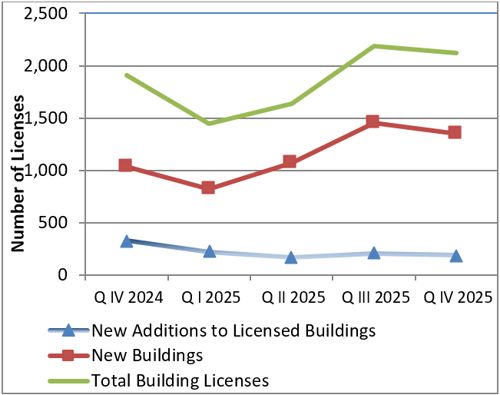 A total of 2,120 building licenses were issued in the fourth quarter of 2025, of which 1,354 are new buildings.