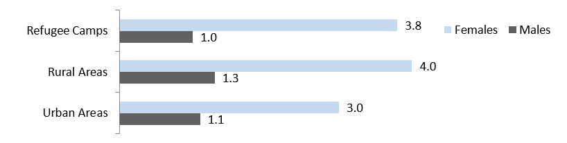 In 2023, the illiteracy rate reached 2.6% in rural localities, 2.4% in refugee camps and 2.0% in urban areas.
