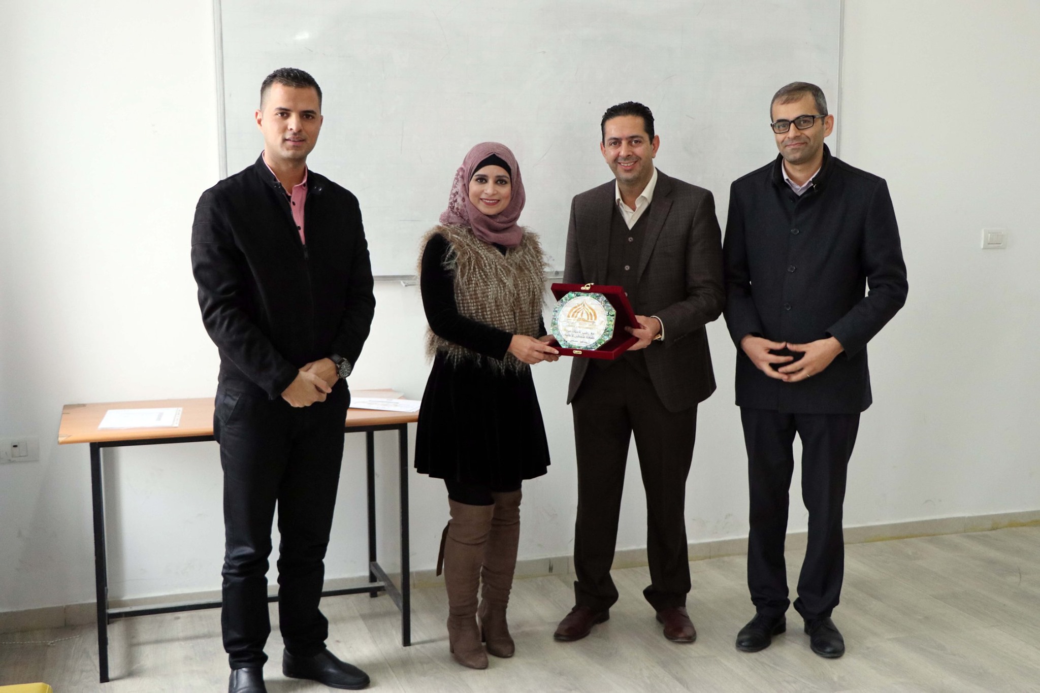 وفي نهاية الدورة تم توزيع الشهادات على الطلبة المشاركين، فيما قامت الجامعة بتكريم المدربة بدرع تقديري.
