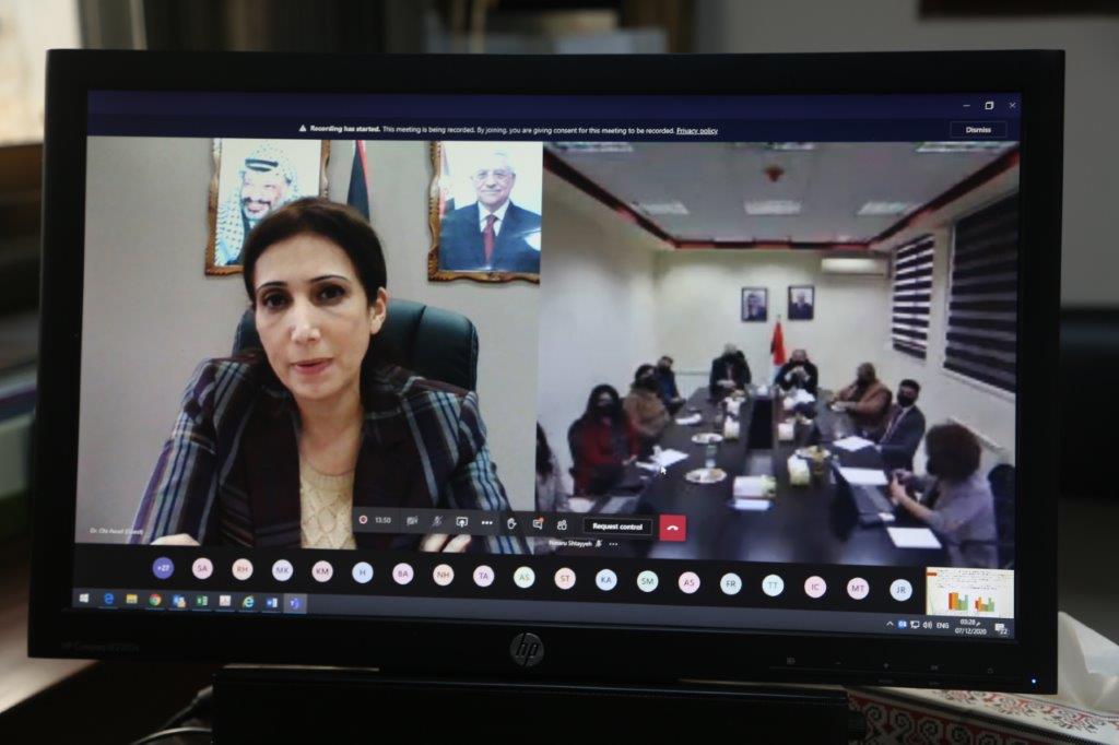 رام الله-7/12/2020-عقدت وزارة الاقتصاد الوطني والجهاز المركزي للاحصاء الفلسطيني ورشة عمل افتراضية عبر الزووم لاستعراض ومناقشة نتائج مسح أثر جائحة كورونا على المؤسسات الاقتصادية الذي نفذته الوزارة بالتعاون مع الإحصاء الفلسطيني وبتمويل من البنك الدولي على المؤسسات الاقتصادية من خلال مشروع دعم ابتكارات القطاع الخاص الممول من قبل البنك الدولي.