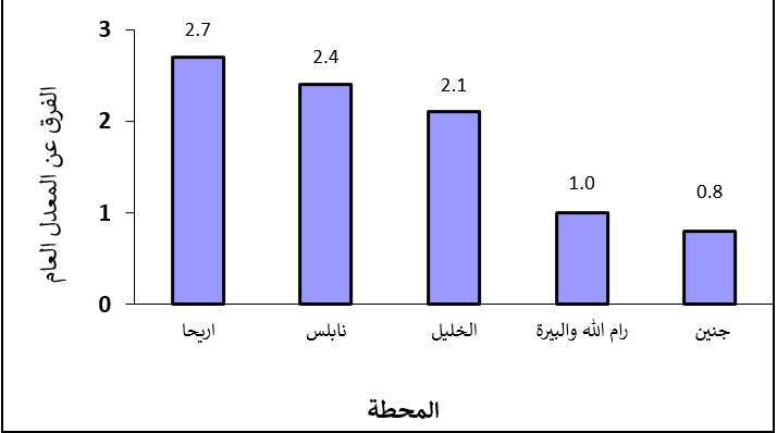 إضافة إلى ذلك، لوحظ أن درجات الحرارة الصغرى قد ارتفعت خلال العام 2025 عن المعدل السنوي بمقدار تراوح ما بين 0.6 مo في محطة رام الله والبيرة، و5.2 مo في محطة أريحا.