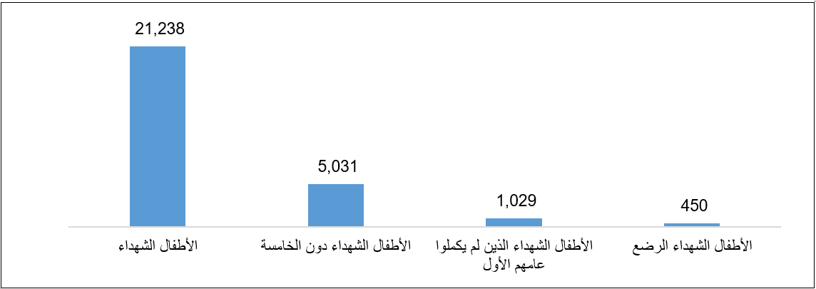 عدد الأطفال الشهداء في قطاع غزة حسب أعمار مختارة حتى 31 كانون الأول/ديسمبر 2025