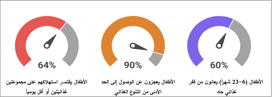 نسبة الأطفال في قطاع غزة الذين يعانون من نقص التنوع الغذائي حتى شباط/ فبراير 2026
