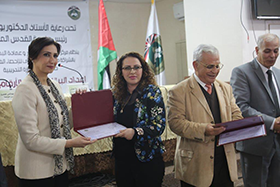 وفي الختام، سلم أ. د. عمرو، والوزيرة عوض، وأ. د. سمير النجدي، وأ. د. حسني عوض، وأ. محمود الحوامدة مدير مركز التعليم المستمر وخدمة المجتمع، الشهادات للخريجين الذين بلغ عددهم (18) عاملاً من دوائر الجامعة ومراكزها المختلفة، كما جرى تسليم شهادات تقدير للمدربين بالدورة التي استغرقت نحو (27) ساعة تدريبية.