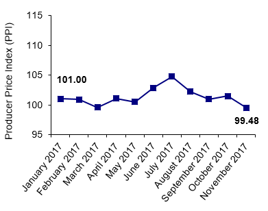 The changes of Producer Price Index for November 2017 were traced back to changes in prices of the following major activities compared to the previous month