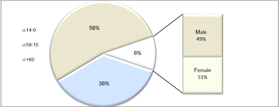 Even though the percentage of the elderly is expected to increase in Palestine over the coming years, it will remain relatively low and will not exceed 6% during the current decade. It is expected to start increasing after the middle of the next decade.