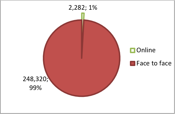 99% of participants participated face-to-face in the cultural activities in the West Bank